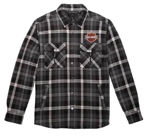 Das Limited Edition Milwaukee Flanellhemd ist für alle, die den Herbst und Harley-Davidson lieben. Dieses traditionelle Flanellhemd wurde mit einem gesteppten Futter für zusätzliche Wärme aufgepeppt. Gefertigt aus robustem Twill aus reiner Baumwolle und mit zahlreichen Taschen ausgestattet, darunter eine Innentasche für die wichtigsten Dinge. Mit einstellbaren Bündchen und einem Kragen, der dank versteckter Druckknöpfe beim Fahren an seinem Platz bleibt. Das Stickmotiv auf der Brust beweist, dass das Erbe des Bar & Shield weiterlebt. Der Vorrat an diesem langärmeligen, gesteppten Flanellhemd ist begrenzt bestelle Dein Exemplar also noch heute.