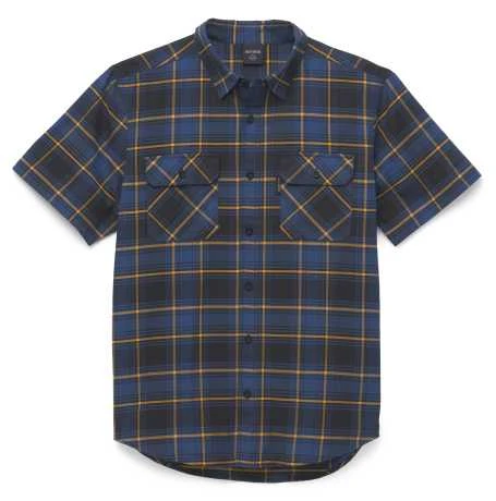 Original Harley-Davidson Kurzarmhemd für Herren. Peppen Sie Ihren Look mit unserem Racing Plaid Shirt auf. Dieses kurzärmelige Herrenhemd ist aus einer bequemen Mischung aus Baumwolle und Polyester gefertigt, die nicht einläuft und nicht ausbleicht, und enthält eine Prise Elasthan für zusätzliche Dehnbarkeit. Das lebendige und vielseitige Karomuster verfügt über robuste Knopfverschlüsse und einen versteckten Druckknopfkragen, der während der Fahrt an seinem Platz bleibt. Die Vorderseite ist minimal gebrandet, so dass die bestickte Rückseite unsere Rennsportära der 1930er Jahre in all ihrer Pracht feiern kann.