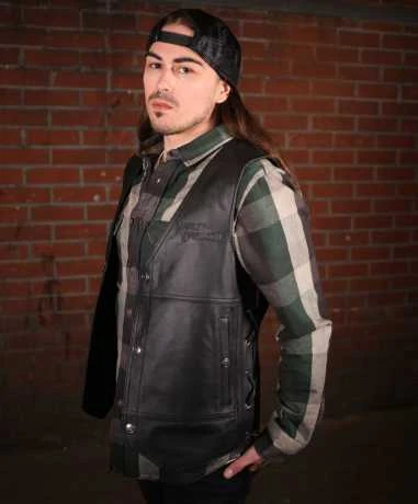 Die Tradition II Lederweste im klassischen Design bietet viel Raum, um ihr mit Aufnähern, Buttons und weiteren Elementen eine eigene Note zu verleihen. Diese Herrenweste aus strapazierfähigem Rindsleder hat einstellbare Schnürungen für eine optimale Passform.