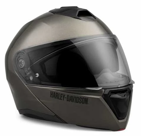 Der modulare Harley-Davidson Helm Capstone mit Sonnenblende ist aus fortschrittlichem Polycarbonat hergestellt und bietet einen doppelten Kinnriemen und einen leichten Kinnstab für mehr Komfort.