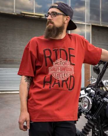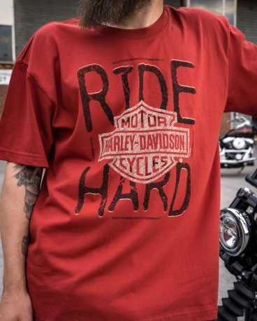 Original Harley-Davidson Herren T-Shirt im Ride Hard Design mit Bar & Shield Logo auf der Brust.