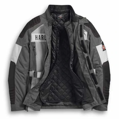 - Fit & Mobilität: Action zurück. Vorgeformte Ärmel mit Abnähern am Innenarm für weniger Volumen. Verstellbarer Hüftgurt. Zwei seitliche Reißverschlusszwickel. Der Reißverschluss von Jacke zu Hose verhindert, dass die Jacke hochrutscht, und lässt sich mit jeder Harley-Davidson®-Motorradhose mit einem Reißverschluss von Jacke zu Hose (außer 98236-13VM) verbinden.