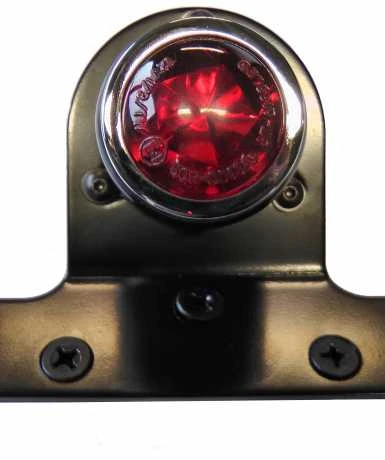 LED Rücklicht im Oldschool Design in Schwarz mit Chrom Ring und Facettenschliff im Glas.