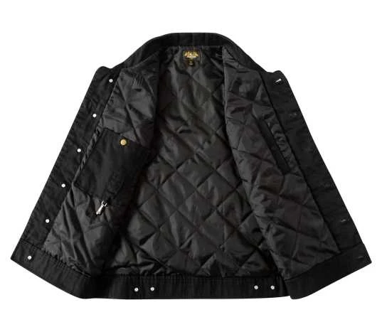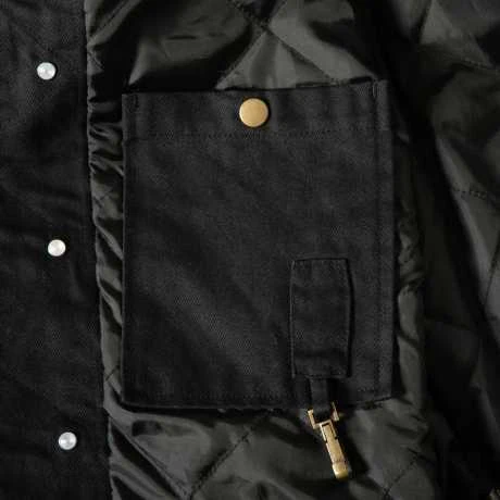 Mit gestepptem Taftfutter, zwei Brusttaschen, geknöpftem Kragen, Reißverschlusstasche auf der Rückseite mit Druckknöpfen, Innentaschen mit Schlüsselclip und Good Luck-Anstecknadel auf der Taschenklappe, 100% Baumwolle und Futter 50% Baumwolle/50% Polyester