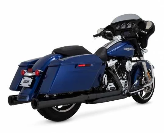 Mit großen 4-Zoll-Schalldämpfern, die mit rennsportinspirierten CNC-gefrästen Knüppelendkappen versehen sind, sind die Eliminator 400 so abgestimmt, dass sie den Harley-Davidson Baggern ein tiefes und aggressives Dröhnen verleihen.