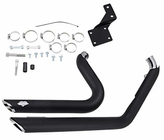 Die Vance & Hines Shortshots Staggered Auspuffanlage wird in schwarzem Finish geliefert.