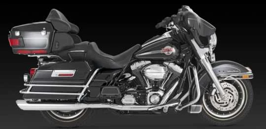 Die Vance & Hines Twin Slash Round Slip-On Endtöpfe für H-D Touring 95-16 werden in einem Chrom- Finish geliefert.